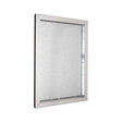 Its frame is made from sleek chrome metal, the subtle bevelling on each corner disrupting its smooth surface. The mirror is notable for the small, cut glass beads which are surmounted on its surface, creating a quirky splash effect. Able to be displayed landscape or portrait, this mirror is sure to draw attention.