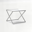 The Roma metal and glass side table will make a contemporary feature in your living room complementing a variety of decor styles. This durable and sleek modern side table has a strong satin nickel finish metal frame featuring criss cross design and a clean profile. The tempered clear glass top further accentuates the minimalist look of this contemporary side table.