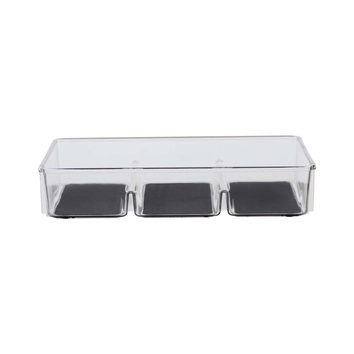This 3-compartment kitchen organiser is a practical and efficient solution for decluttering and organising kitchen drawers or pantry shelves. The acrylic construction allows for easy visibility of the contents, while the rubber lining prevents items from sliding and provides protection. The three compartments offer organised storage for a variety of items.