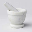 The white marble mortar and pestle has a luxurious and tradtional aesthetic.