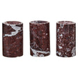 The Salmo set of three red marble tealight holders feature contrasting white veining, which adds to the contemporary aesthetic.