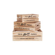 This set of three crates are made from natural sustainable paulownia wood and feature grocery store lettering on their sides. The crates have a slatted design and have cut-out handles at each end, with high sides that make for easy stacking of fruit or vegetables.