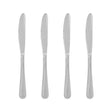 Made from durable stainless steel, this set of four knives are rust and corrosion resistant and feature a striking silver finish that makes them reflective. Each knife features engraved detailing along its gently contoured handle.