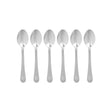 Created from stainless steel, this set of six coordinating teaspoons makes a durable addition to the dining table. Each piece features a polished silver colour that lends an appealing reflective finish. The curved and tapered handles feature a subtle engraved border around the rim to add a decorative touch.
