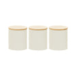 This set of three Alton cannisters in cream colour are a great way to add a modern touch to a kitchen. Both secure and sophisticated, they are made of metal so they're durable and the bamboo lids help to keep your coffee, sugar, tea or snacks fresh for longer.