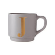 Crafted from smooth porcelain, this mug has a contemporary design and a muted grey finish. A warm gold finish "J" letter is accentuated on the light coloured surface. A curved handle makes it easy to grip and hold the mug. Beautifully designed, these stackable monogram mugs come in a variety of colours and alphabets.
