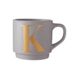 Crafted from smooth porcelain, this mug has a contemporary design and a muted grey finish. A warm gold finish "K" letter is accentuated on the light coloured surface. A curved handle makes it easy to grip and hold the mug. Beautifully designed, these stackable monogram mugs come in a variety of colours and alphabets.