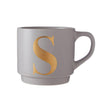Crafted from smooth porcelain, this mug has a contemporary design and a muted grey finish. A warm gold finish "S" letter is accentuated on the light coloured surface. A curved handle makes it easy to grip and hold the mug. Beautifully designed, these stackable monogram mugs come in a variety of colours and alphabets.