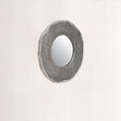 This small round wall mirror is a chic decorative accent for contemporary and modern walls complementing reflective and metallic decor accessories in the room. This modern wall mirror is made from durable aluminium with an antique silver finish that coordinates with he reflective mirror inside. The oak wood effect of the frame has undulating edges that further enhances the organic aspect.