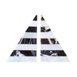 The Soma set of two white marble bookends feature striped black marble, creating a contemporary aesthetic.