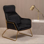 This modern armchair is a perfect addition to a variety of interior settings. The clean lines and sumptuous black velvet upholstery offer a cosy retreat for easy seating. An extra cushion and raised headrest offer an unmatchable seating experience. The sturdy, gold-polished metal frame offers stability to the chair's design. This living room armchair adds a regal touch to your home.-