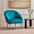 This occasional chair will create a contemporary focal point in your living room with its textured surface and contrasting tones. The densely padded seat, backrest, and arms are upholstered in blue velvet with a decorative texture. This comfortable and stylish occasional chair is standing on splayed metal legs with warm gold finish adding a luxe accent to your living room.