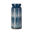 Its short concave neck breaks up the cylindrical, urn-like shape. The natural earthenware tone is revealed in full at the base, while also peeking through at various points from behind the blue and white glaze. Regular triangular shapes lend this handcrafted decorative piece a sense of geometric symmetry. *This item is handcrafted so please expect slight variations to the finish*