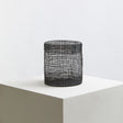 This contemporary cylindrical lantern features sleek black metal wires which neatly intersect each other forming a minimal grid design. It has a transparent round glass shade inside which is designed to hold a pillar candle. Ideal to cast an ambient glow to its surroundings, the Trento black lantern will elevate lighting in your living room, dining area, or hallway.