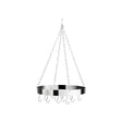 Keep pots, pans, and utensils at hand with this round ceiling rack. It hangs safely from the ceiling by four strong metal chains, their matte chrome finish coordinating with the round rack. Twelve metal hooks are attached to the rack's latticed base, offering plenty of storage and display potential.