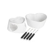 The chic white bowl and burner are made from robust dolomite and which are shaped into a love heart for a more aseptically appealing look. Four long stemmed forks, with black handles, are ideal for picking and dipping your treats into your chosen fondue. The heart shaped burner leaves space for you to place a tea light into, so you can keep cheese or chocolate melted during the party. The Venus fondue set is easy to clean in warm soapy water, so you can be the host with the most whenever you like.