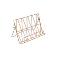 This cookbook holder is a practical and decorative addition for the kitchen countertop. Made from robust iron, it features an effortless geometric accent. This stand in pink powder coating is sturdy enough to hold weightier recipe books, supported by a stand on the back.