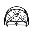 Crafted in a semi-circle shape, the Vertex Deco napkin holder has a matte black finish making it suitable for a contemporary kitchen or dining ensemble. The matching small ball feet furthers its chic visual appeal.