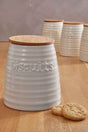 The tapered design canister is made from durable dolomite and features embossed ribbed detail with worded 'biscuit' text ensuring easy identification. The cream finish will bring a touch of freshness to your kitchen. Securely fitting on top, the bamboo lid will keep your biscuits, cookies and other treats safely stored and fresh for longer, so you can be sure to get the delicious treat you desire. Complementing most decors, the Winnie biscuit canister will make a stylish and practical accessory in all kitchens.