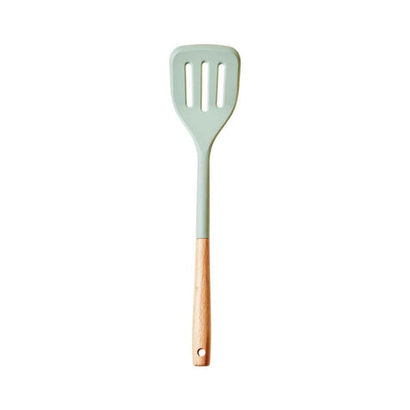 Nova Sage Green Silicone Head Slotted Turner With Round Wood Handle