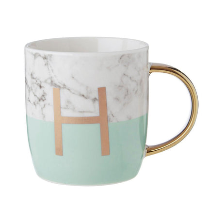 Frosted Deco Marble Effect and Pastel Green Monogram Mug, H