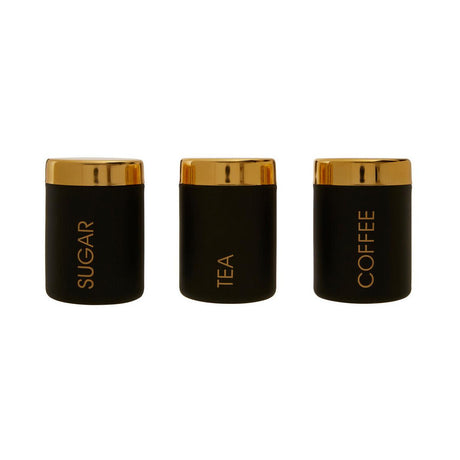 Liberty Set Of 3 Black Enamel Tea Coffee And Sugar Canisters