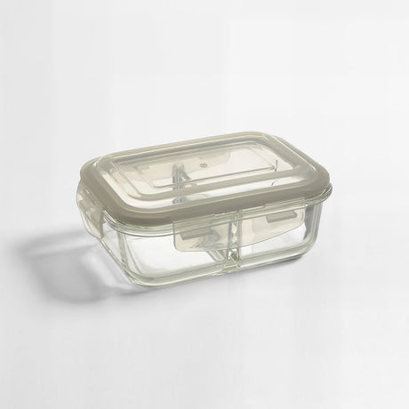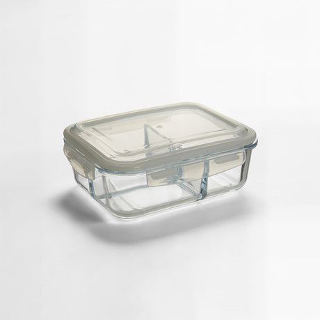 Freska 2 Section Rectangular Glass Container With Lid 640 ml
