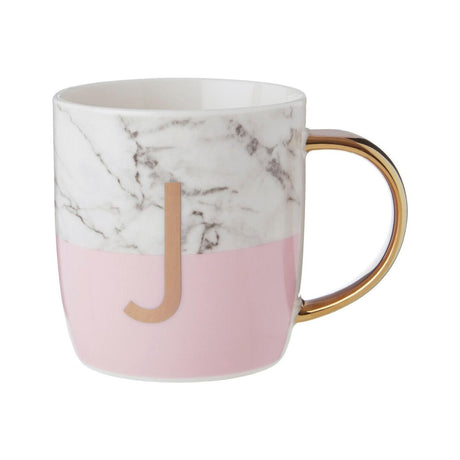 Frosted Deco Marble Effect and Pink Monogram Mug, J
