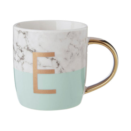 Frosted Deco Marble Effect and Pastel Green Monogram Mug, E