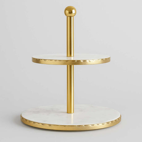 Empire 2 Tier White Marble And Gold Fini