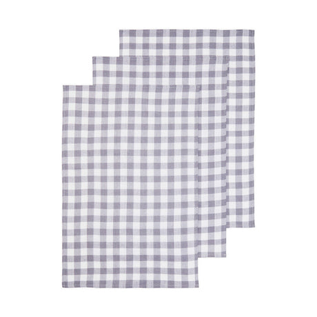 Doro Set Of Three Grey And White Cotton Tea Towels