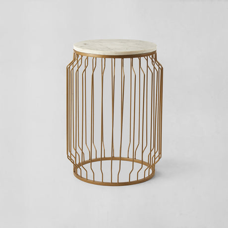 Shalimar Marble Top Round Side Table With Wireframe Base