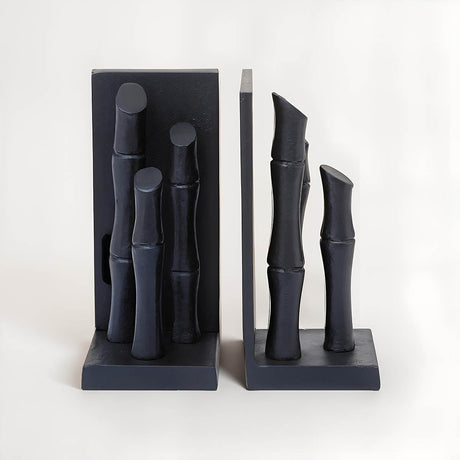 Hiba Set Of Two Black Finish Bamboo Effect Bookends