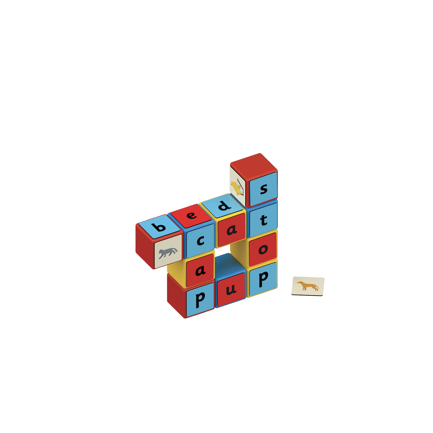 - Includes 10 magnetic building cubes and 45 "Magic Clips" with letters and pictures.