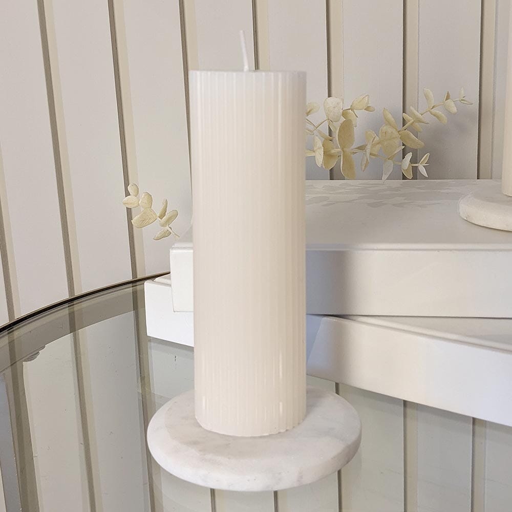 Catalina Cream Ribbed Pillar Candle
