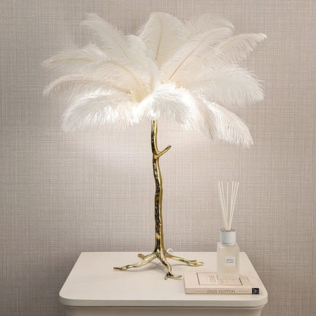 Angelina Premium Cream & Gold Feather Table Lamp