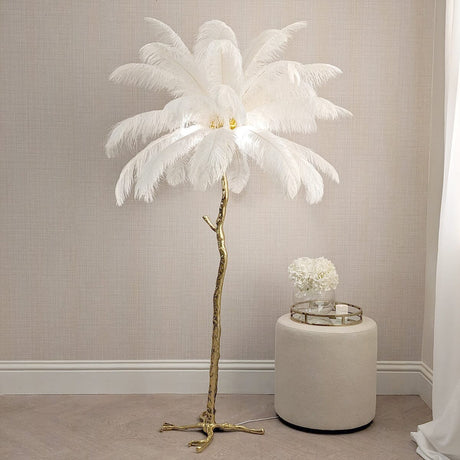 Angelina Premium Cream & Gold Feather Floor Lamp