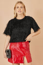Yumi Black Lurex Fringe Relaxed Fit Top