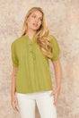 Yumi Green Cotton Pleated short Sleeve Shirt