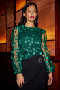 Yumi Green Sheer Sleeve Applique Flower Top - Green / 8 is backordered and will ship as soon as it is back in stock.