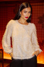 Yumi Ivory Hanging Sequin Long Sleeve Top