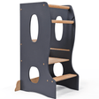Stable Montessori Learning Tower – Wooden Growing Chair With Cut-Out Handles – Grey