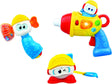 The electronic toy drill is packed with features: pull the trigger or press the buttons to activate realistic drilling sounds, cheerful melodies, and flashing lights. As a fun surprise, a little character figure pops up from the top! The chunky hammer includes rattling beads for auditory stimulation, and the cute tape measure has a soft, retractable tape, perfect for pretend measuring jobs.