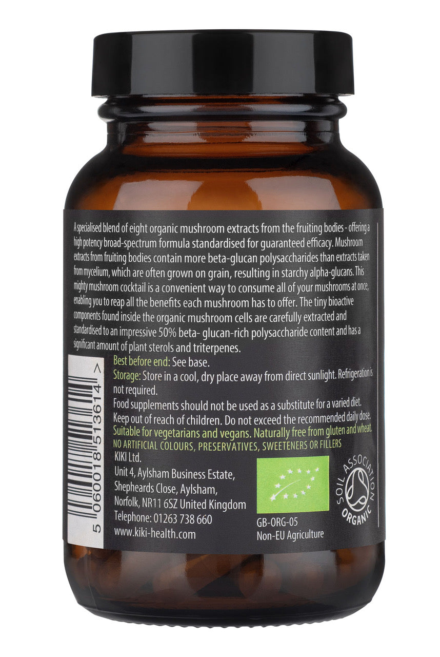 A specialised blend of eight organic mushroom extracts from the fruiting bodies – offering a high potency broad-spectrum formula standardised for guaranteed efficacy.