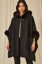 Yumi Black Cape With Luxe Fur Trim And Lining