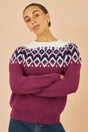 Yumi Burgundy Fair isle Relaxed Fit Knitted Jumper