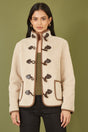 Yumi Cream Borg Jacket With Faux Leather Button Details