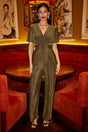 The stretch fabric of this jumpsuit from Yumi not only shines and shines, but adds a comfort to your party look. The tie at the waist and angel sleeves balance the piece to create a mega flattering fit. With a zip up in the back to fasten.