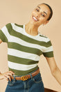 Yumi Green Block Stripe Knitted Top With Button Details - Green / S is backordered and will ship as soon as it is back in stock.