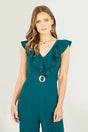 Yumi Green Jumpsuit With Gold Buckle and Frill Detail
